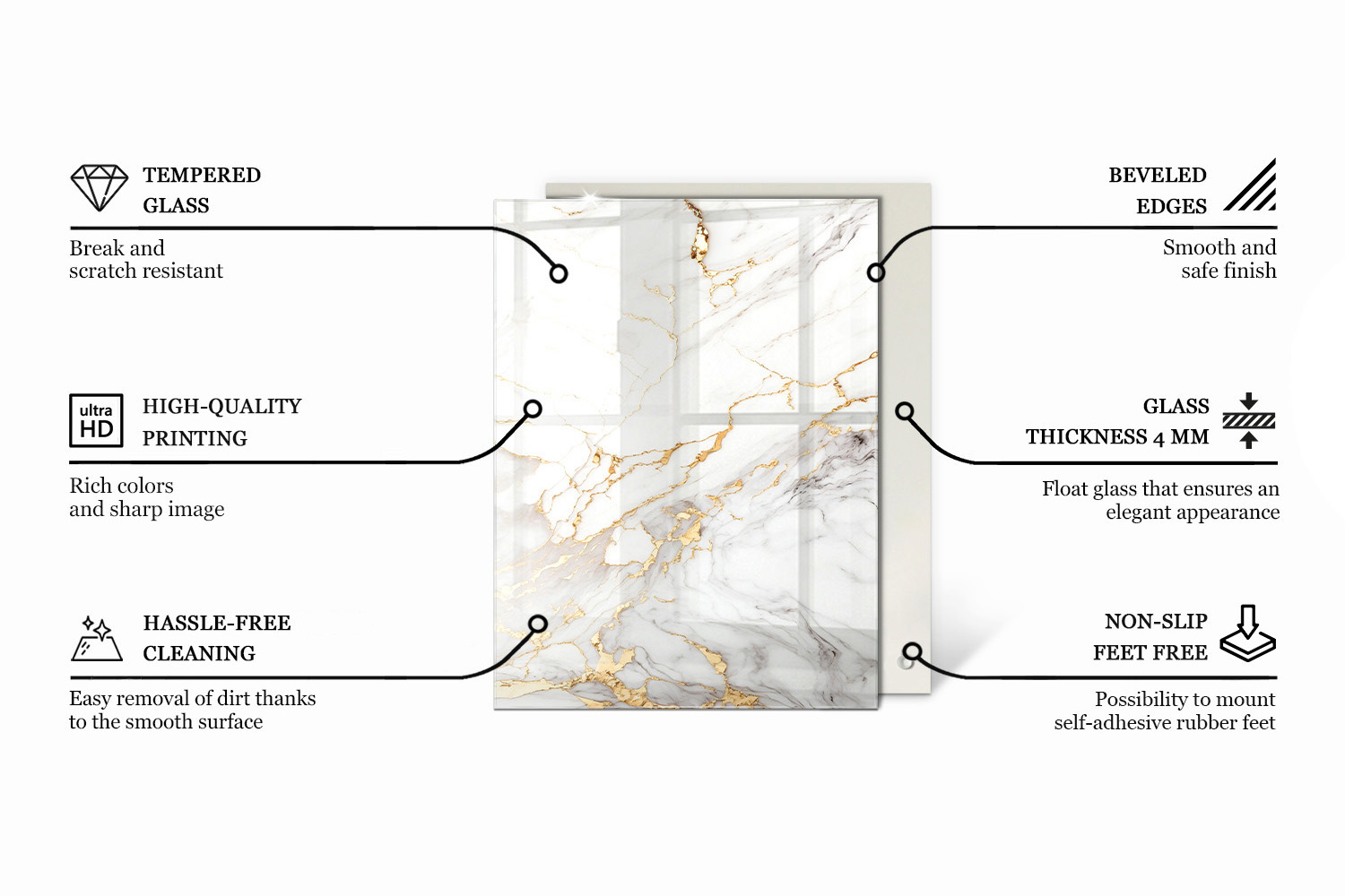 Introduce a unique accent to your interior and transform the look of your furniture with a glass table top featuring the Stylish marble pattern motif. This is not just a functional component—it is a true piece of art that catches the eye and gives the space a modern yet elegant character. The rectangular shape of the top ensures it composes perfectly with many types of table frames, from classic wooden legs to designer metal bases. Thanks to its sophisticated finish, the glass top for furniture subtly reflects light, introducing lightness, space, and a hint of luxury into the room. It is a perfect choice for individuals who want to give their interior a unique style without compromising on quality.